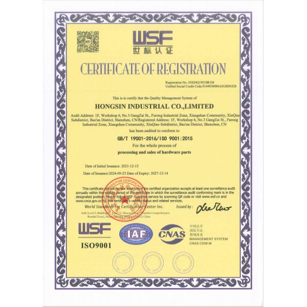 Quality Assurance: Quality team is at the key of Hongsinn big team. Systemetic quality management policy, advanced inspecting instrument, professional and responsible quality team members guarantee very part meet drawings and customers quality standard.